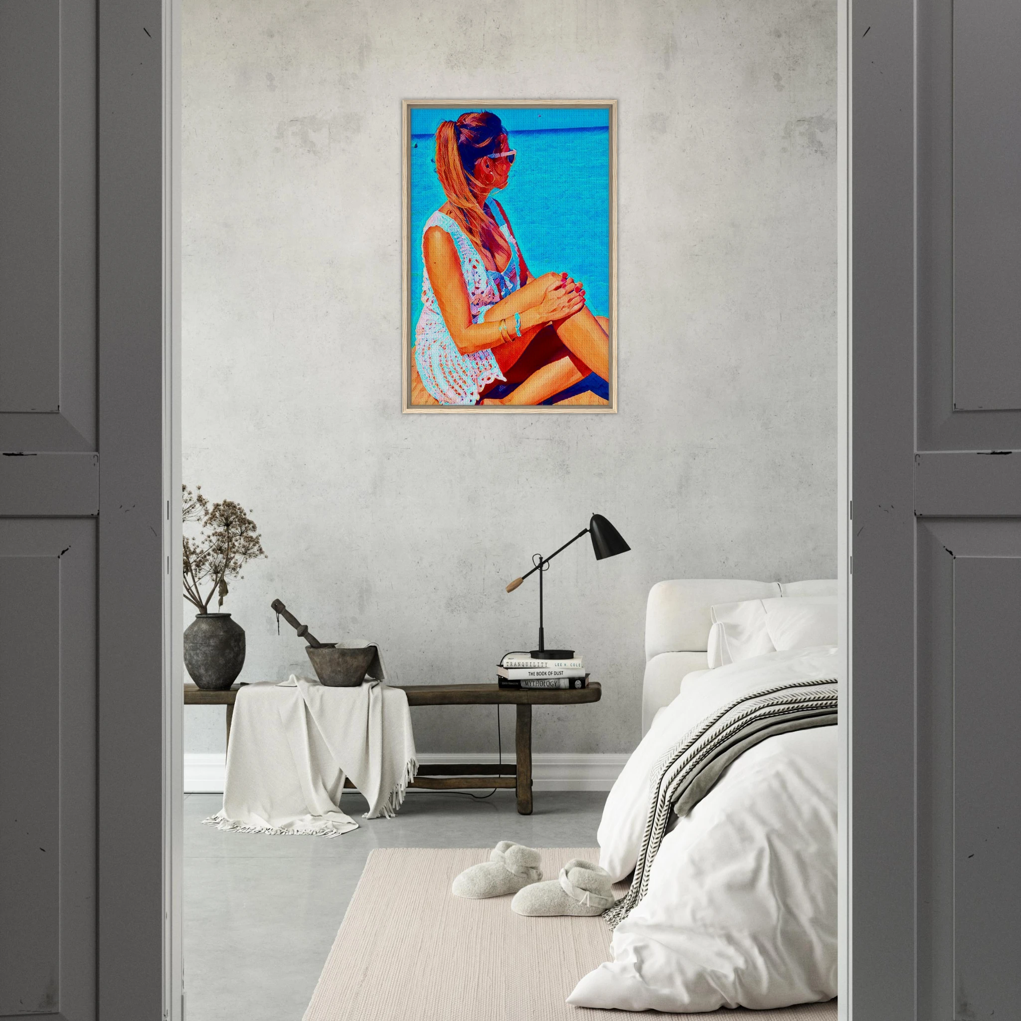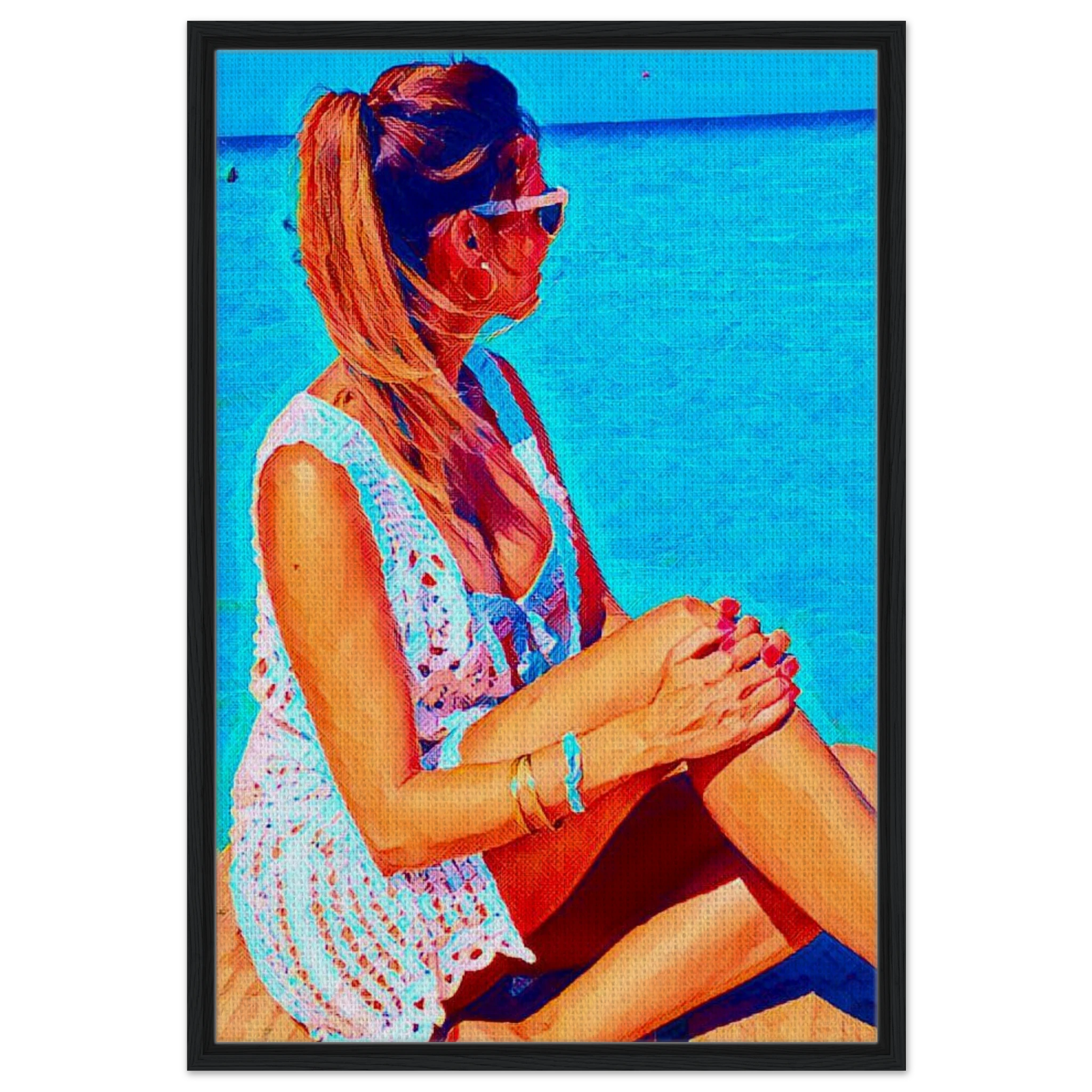 Tu imagen se imprime con calidad museo sobre un lienzo de textura noble, enmarcado con maderas certificadas FSC, para honrar tanto la estética como el alma de cada Reina representada.