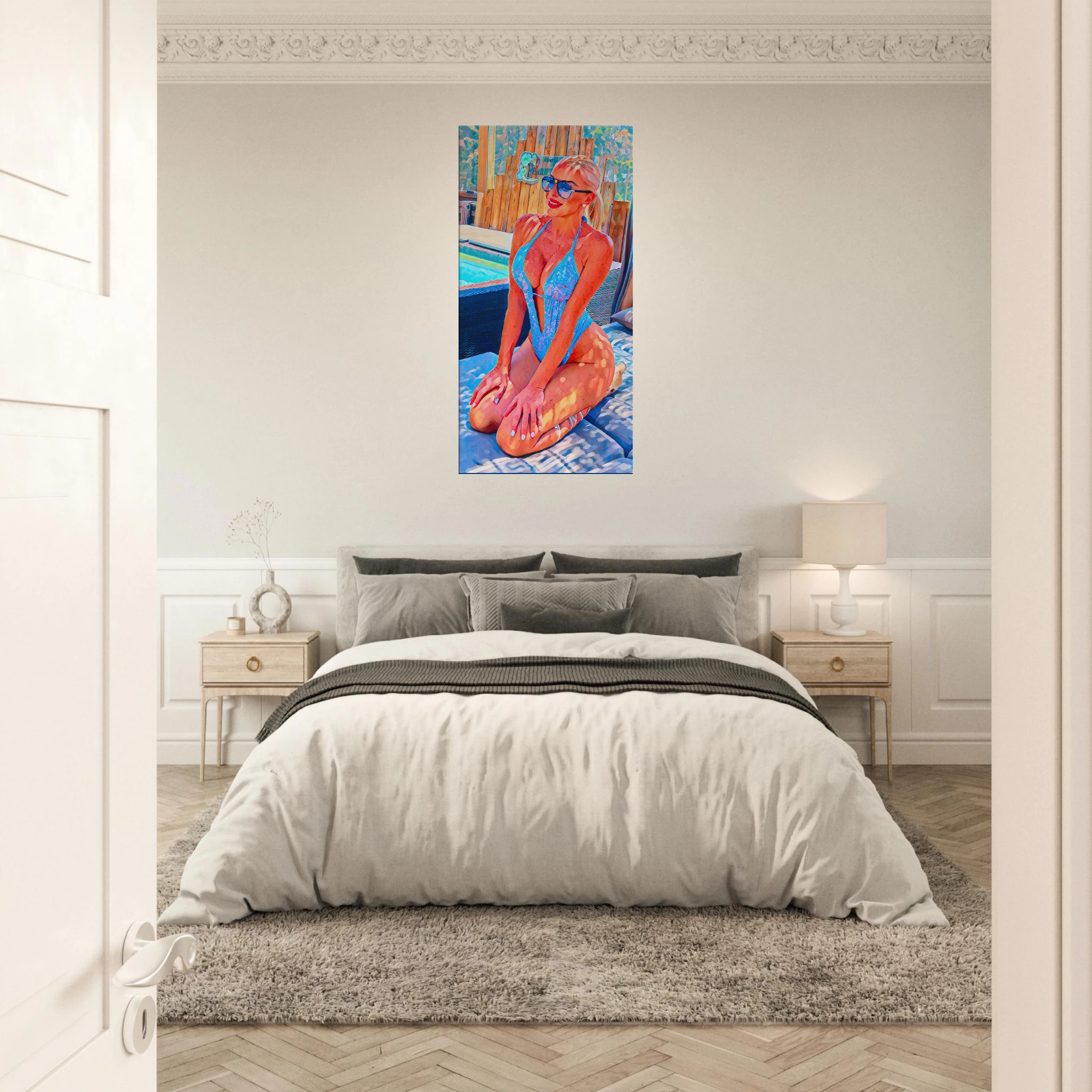 Vestida con un bañador de brillo marino y rodillas sobre el colchón tibio del sol, parece que todo el día hubiese sido creado solo para rodearla.Gafas oscuras, sonrisa en reposo, hombros dorados por la luz que la busca…