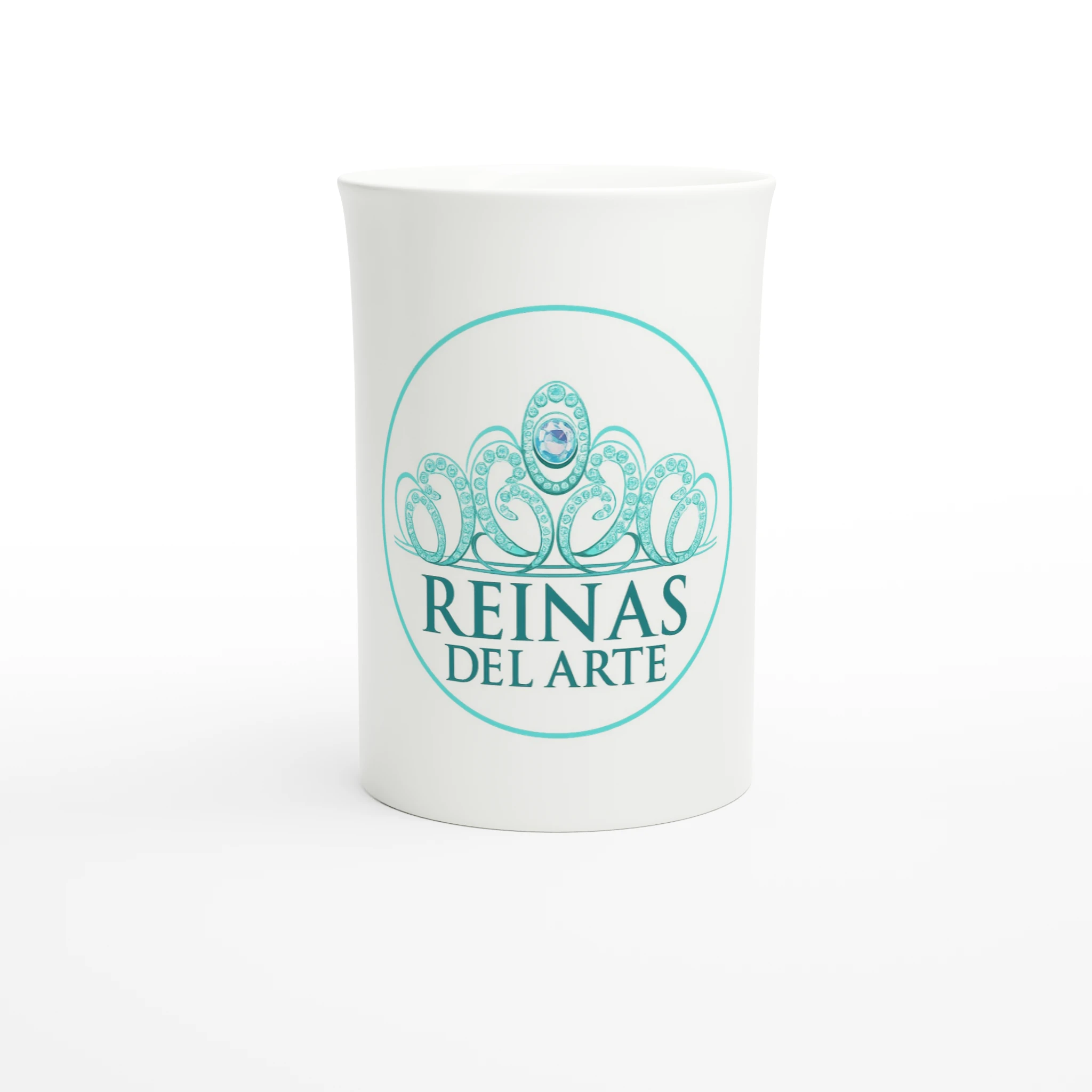 👑 Taza Reina del Arte – Porcelana Blanca Esbelta 10 oz (Personalizable)